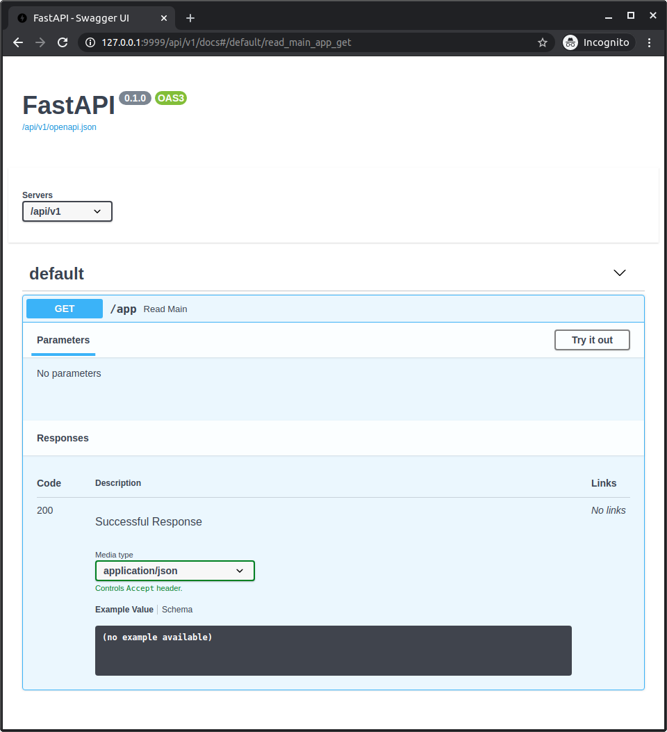 In the docs UI at http://127.0.0.1:9999/api/v1/docs it would look like: